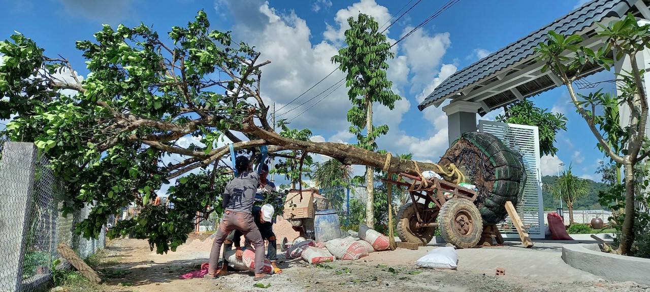Cảnh quan Ngọc Xuân tiến hàng đẩy tay cây vào cho Khách vì lý do xe cẩu không vào được. Địa hình núi non hiểm trở, xe cẩu không thể lên tới thì việc di chuyển cây phải nhờ vào sức người và sử dụng xe pháo. Chúng tôi nhận xử lý tất cả các …